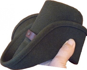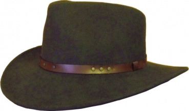 Wählen Sie den Hut nicht zu groß. Leder ist ein nätürliches und relativ flexibles Material. Wie bei Lederhosen passt sich auch ein Lederhut etwas an. Ist der Hut etwas zu klein, können Sie ihn über das angewinkelte Knie vorsichtig dehnen. Sollte der Hut etwas zu groß sein, kann er durch Lichtbestrahlung oder Trocknen etwas "geschrumpft" werden. Wir haben gute Erfahrungen mit einer Infrarot-Lampe gemacht. Außerdem können Sie in Hutgeschäften erhältliche Einlagen einkleben.