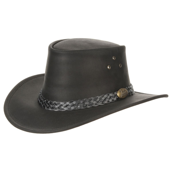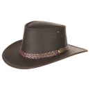 Gefertigt ist der Wallaroo aus einem starken und robusten Rindsleder und garniert ist der Hut mit einem aufwendig, vierfach geflochtenem, Hutband aus etwas hellerem Rindsleder.