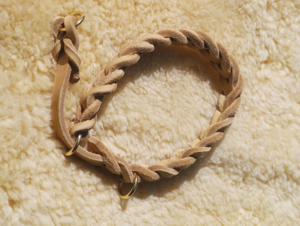 Modell “Merano” - Halsband mit begrenztem Zug, als Halbwürger oder ohne Zugeigenschaft zu tragen, formschön geflochten, maximale Lederbreite von 15 mm,