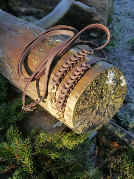 Ganz tolle, hochwertige Zügel! Ich habe eine Massanfertigung bestellt, ohne Karabinerhaken zum direkten Einschnallen ins Gebiss. Ich bin der Meinung, dass eine "Metall in Metall " Verschnallung nicht so gut ???? ist für eine weiche, konstante Verbindung zum Pferdemaul. Durch die elastische Federung der geflochtenen Zügel habe ich eine besonders weiche Verbindung zum Pferde ???? Maul. Sehr zu empfehlen
